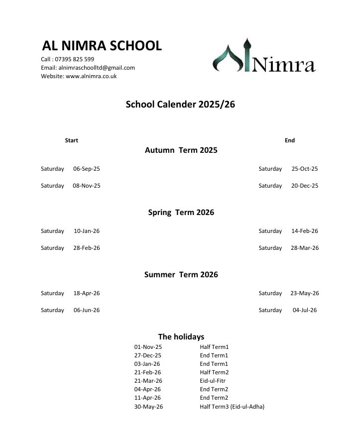 Al-Nimra School’s teaching staff consists of qualified and experienced education professional, who possess advanced proficiency in Islamic and Quranic studies. With experienced professionals possessing specific training for their year groups, Al-Nimra School’s classes number as follows:
